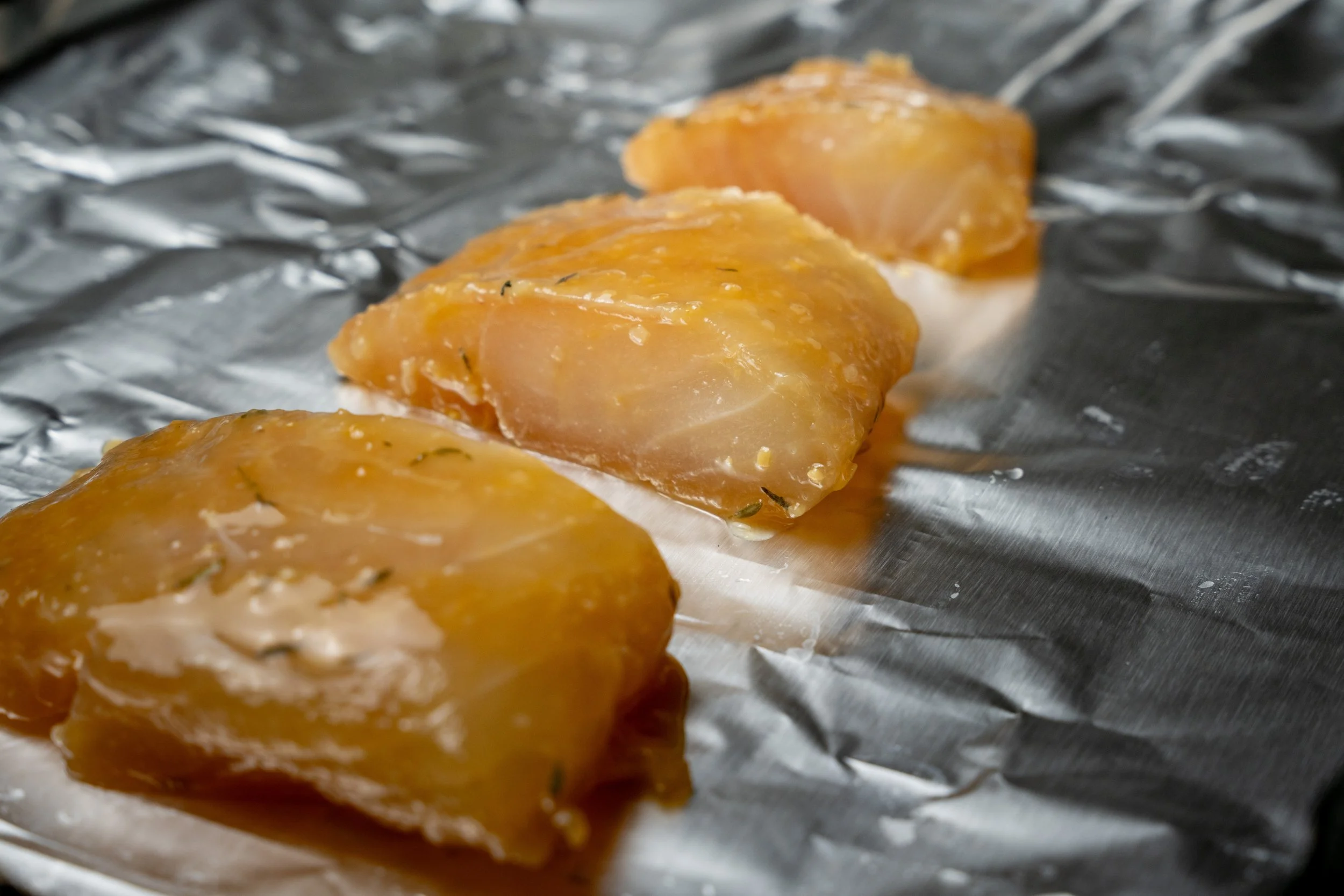 Week 15: Miso Cod Dec 28 Written By Cheng Xing Baked miso-cured cod, torch-caramelized. Finished with lemon juice, served with bok choy and radish. Cheng Xing